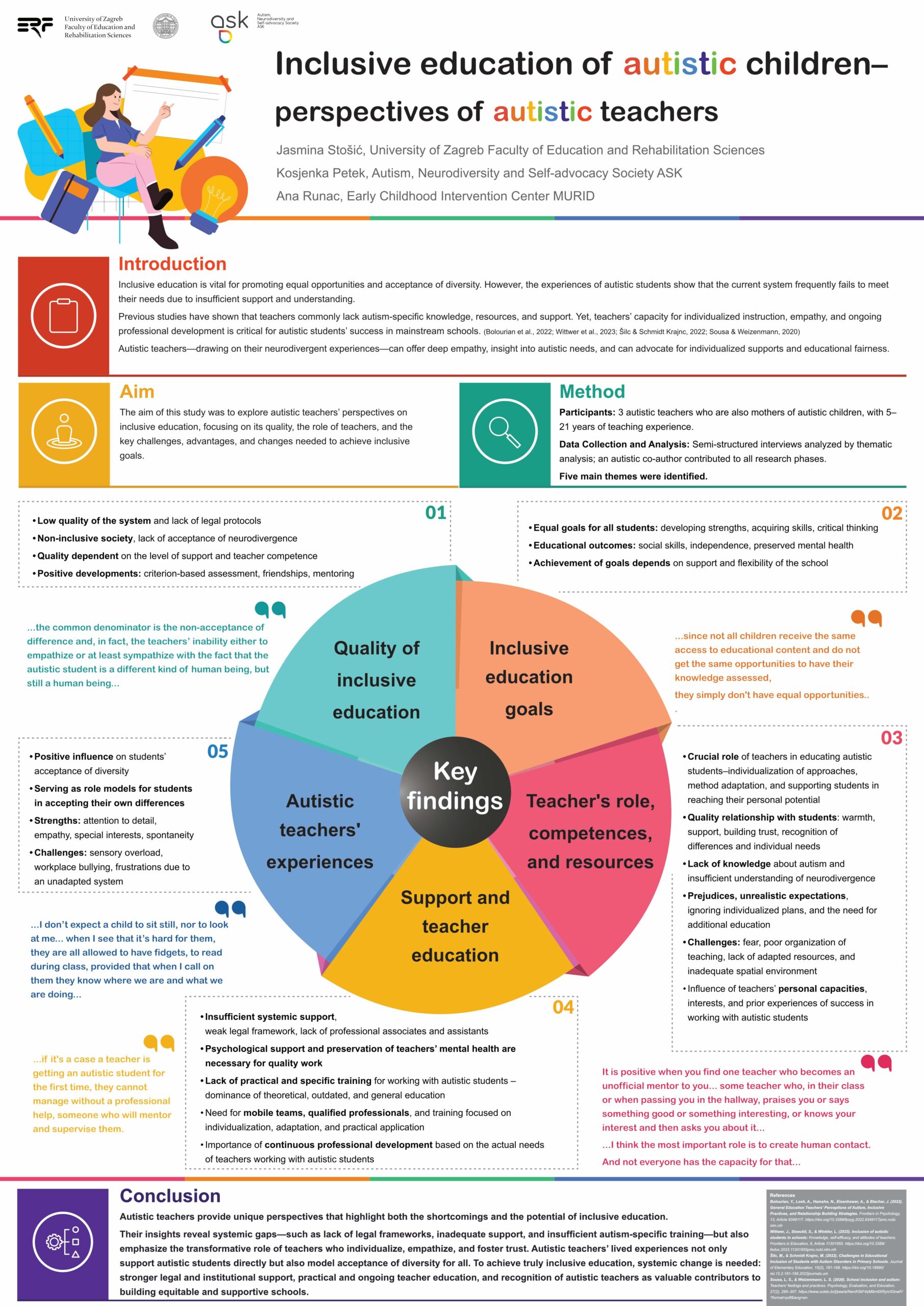 Na ovogodišnjem kongresu Autism-Europe predstavile smo poster “Inclusive education of autistic children–perspectives of autistic teachers”.